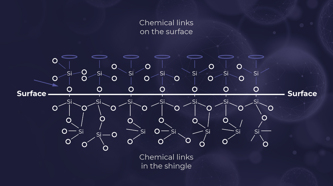 The evolution of GoNano technology created a shift in how sealants are approached. A regular shingle is sealed with oil, filling up the space in between shingles. GoNano modifies the molecular structure of asphalt shingles permanently. After application, a reaction occurs within each shingle. This reaction fuses both organic and inorganic material, creating new chemical links, called S1 particles. These S1 particles link shingle granules together, working from the inside out, creating a unified barrier against environmental strains and saves you money by extending the lifespan of your roof.